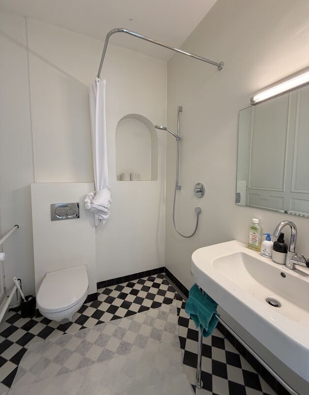 Ergänzt wird die Fläche durch eine moderne Küche sowie ein helles Badezimmer mit klassischem Schachbrettboden. Für kurze Pausen oder einen Moment an der frischen Luft steht zudem eine kleine Terrasse (ca. 15m2) zur Verfügung, die ausschliesslich diesem Büro vorbehalten ist.
