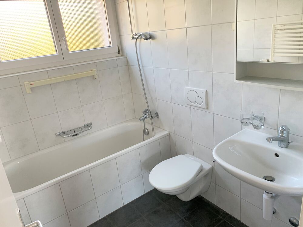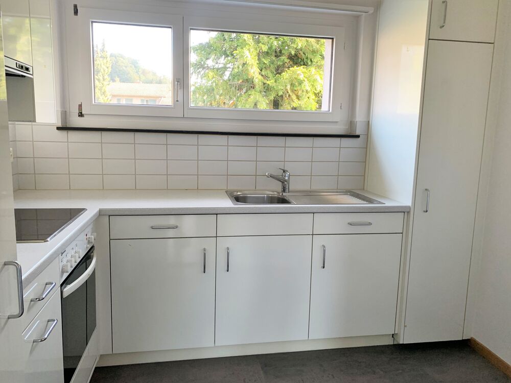 Zentrale Wohnlage nähe Bushaltestelle. Helle und sonnige Wohnung frisch gestrichen mit moderner Küche und renoviertem Bad. Parkettböden in allen Wohnräumen. Balkon mit schöner Aussicht zur Abendsonne.